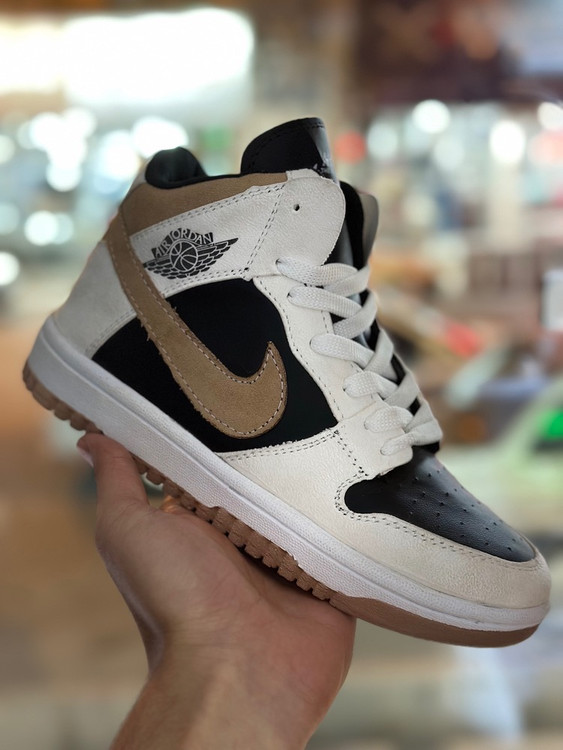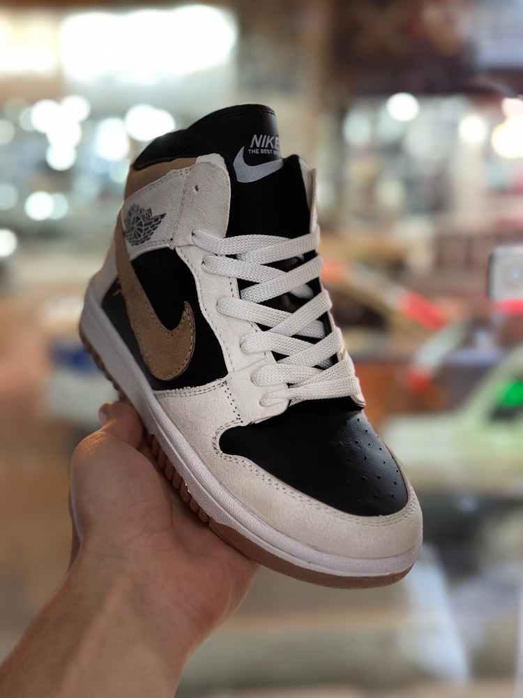 • طرح کلاسیک + فشن: فرمی برگرفته از ایر جردن ۱ با تلفیق رنگهای قهوهای و سفید یا کرم که ظاهر شیک و خاصی ایجاد میکند.